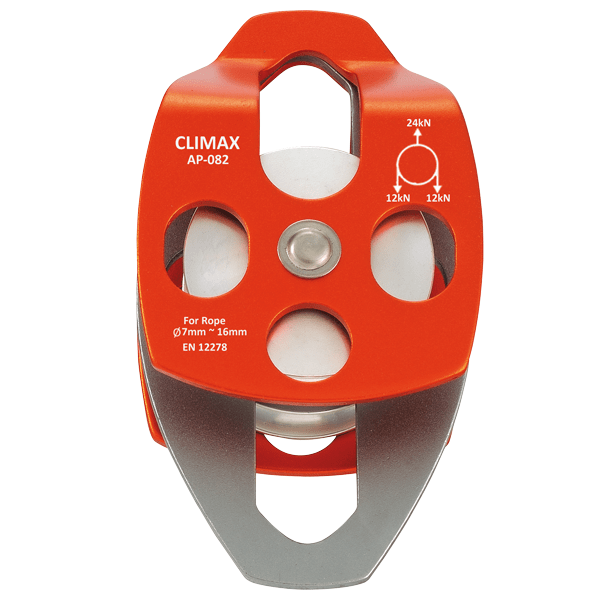 Single bearing pulleys designed to install hauling systems. Fixed plates